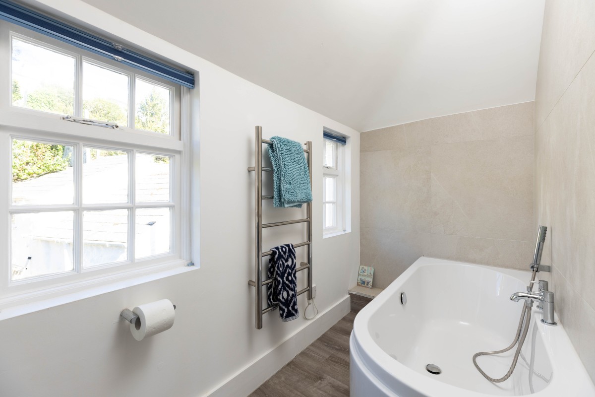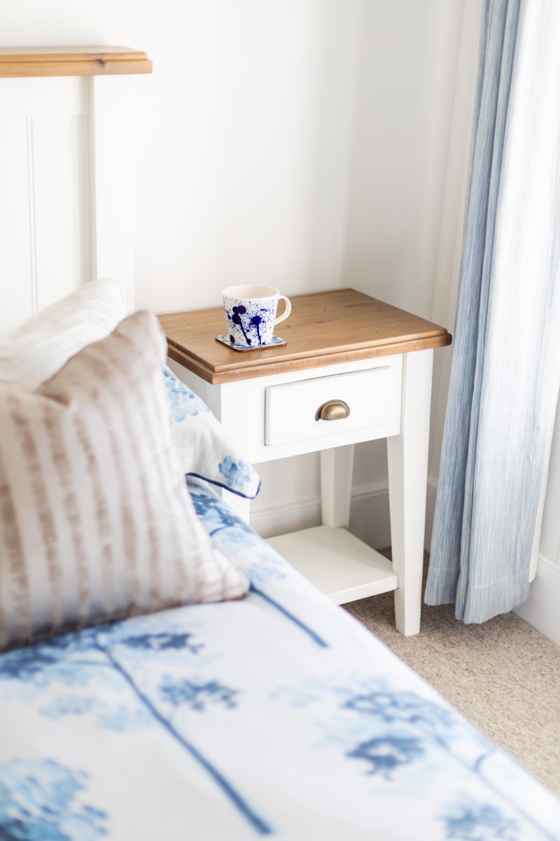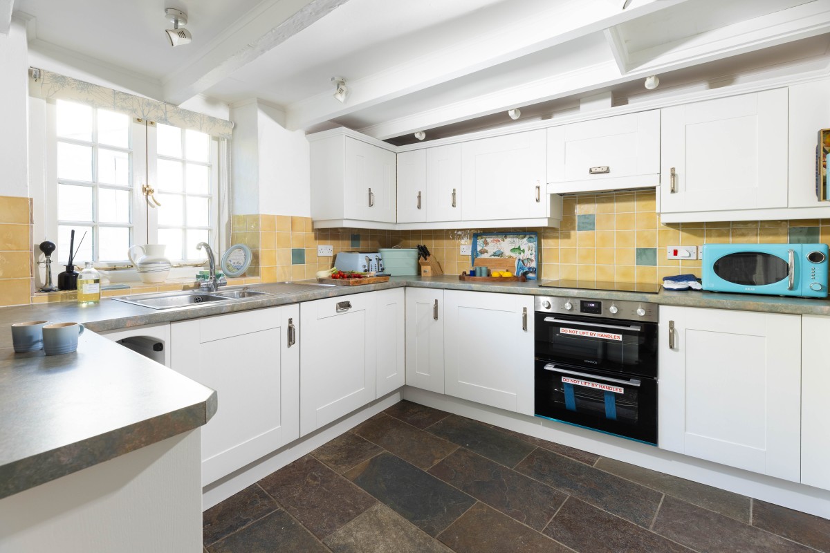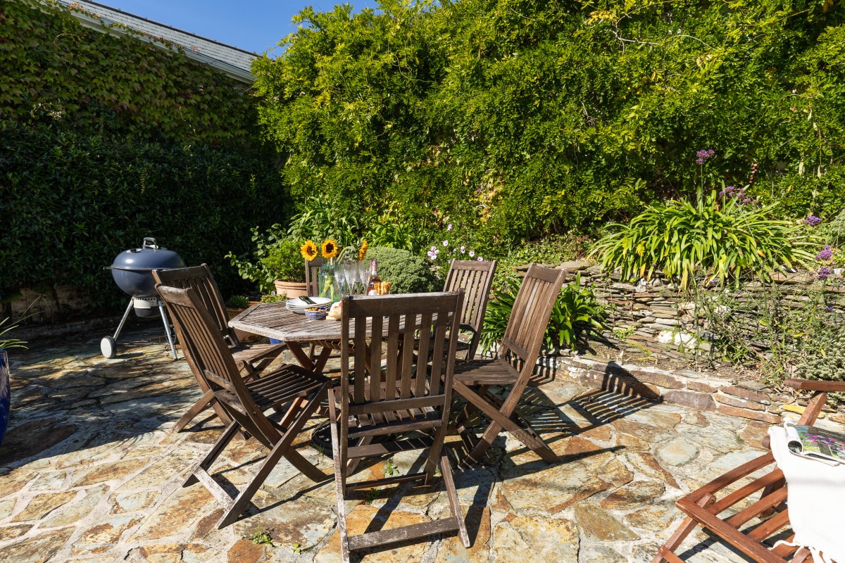 The kitchen has been thoughtfully equipped with everything you need for self-catering, from quality appliances to charming crockery, creating a welcoming space to cook up fresh local seafood or hearty family suppers. Gather around the dining table in the peaceful dining room or head outside to the garden to dine alfresco amid the scent of flowers and the fresh sea air. Comfy loungers make this a delightful spot for sunbathing, reading or enjoying an evening drink as the sun begins to set.